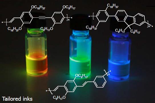 Thanks to the advantages, such as self-luminous, low power, light weight, wide viewing angle, fast response and high image quality, polymer light emitting diode (PLED) is widely used in display and lighting fields and is a fast-developing and highly prospective topic in printed electronics. However, the limitation on the cost, largesize, full color, and other factors, will be more obvious ifusing the traditional deposition techniques. IJP is not only expected to solve these problems, but also has the great potential to print PLED anode, cathode and TFT structures. Thus it is an ideal preparation technology for PLED manufacturing.