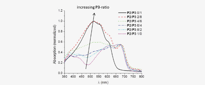 Fig. 8: Absorption spectrum for different blend ratio of P2/P3