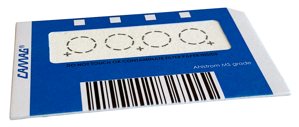符合美國 FDA 的體外診斷 (IVD) 醫(yī)療器材其中指定的收集介質(zhì)之一,濾紙上含四個(gè)小圈區(qū)域,方便填充檢測(cè)液體樣本。
