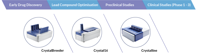 Crystallization research plays an important role in the drug development process as majority of the therapeutic drugs exhibits in multiple polymorph forms and technically each polymorph possess different physical properties. Differences in physical properties (e.g. solubility, hygroscopicity, melting point) would then affect other important properties such as product bioavailability and stability. Pharmaceutical companies worldwide are now trying to gain their competitiveness by stepping in the crystallization research much earlier in the drug development cycle, thus to avoid unexpected crystal form related issues and delays at later stages. This also means crystal form information required during patent application could be obtained much earlier and eventually product launch could also be accelerated.