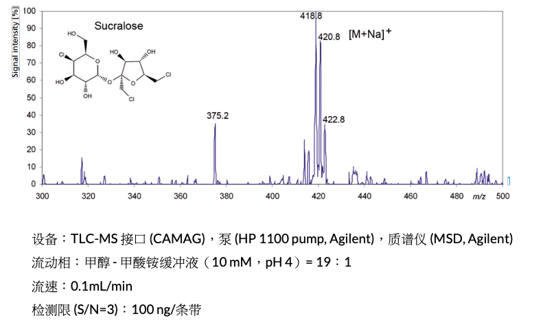 通過三氯蔗糖的 HPTLC 的檢測(cè)示例,可以看到高效薄層色譜法具有樣品制備簡(jiǎn)單、樣品兼容性好、衍生化處理簡(jiǎn)單和檢測(cè)靈敏度高的優(yōu)勢(shì),同時(shí)還適用于大量樣品的高通量平行快速分析。