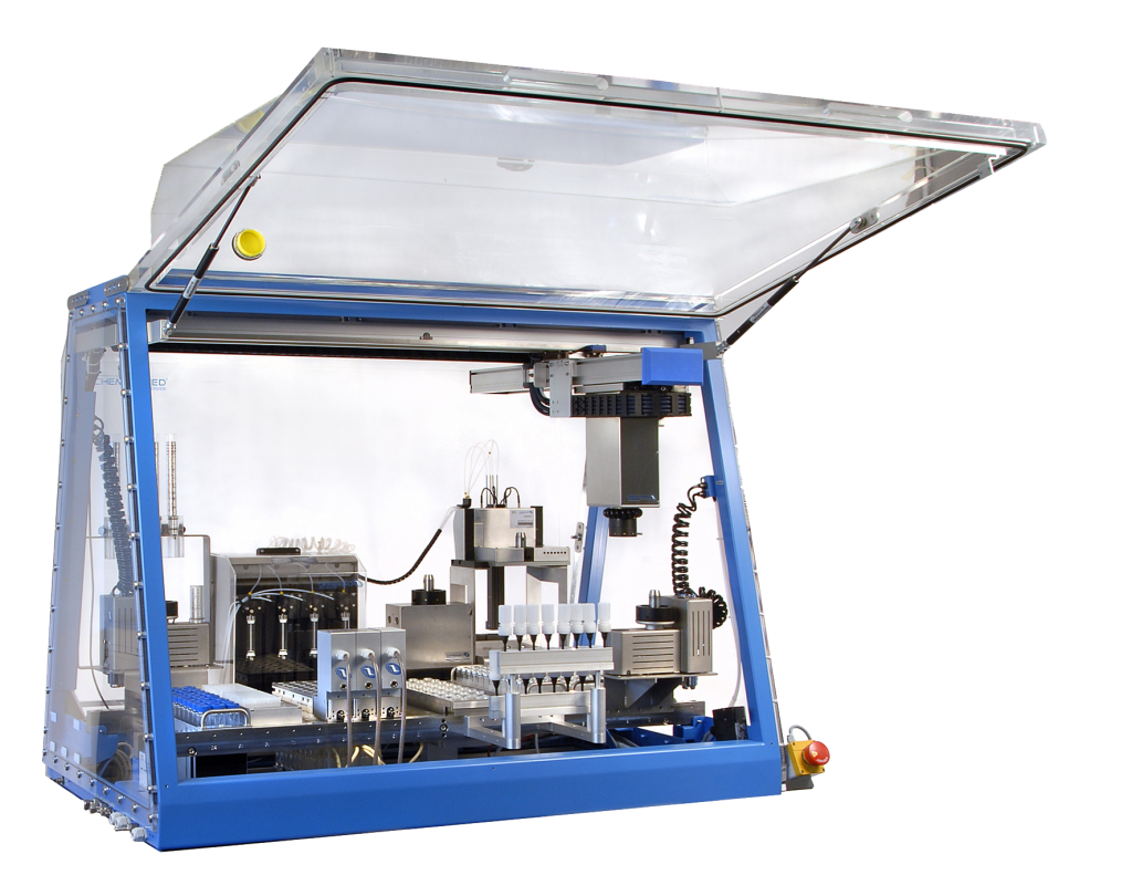 Chemspeed?的?ISYNTH?化合物庫全自動合成平臺,允許在單一工作站上完成各種類型有機合成反應。ISYNTH?可實現(xiàn)有機合成全流程的自動化運行,全自動集成式、一站式的完成化合物庫合成所需的反應準備、合成、后處理、分析和產(chǎn)物儲存等工作。