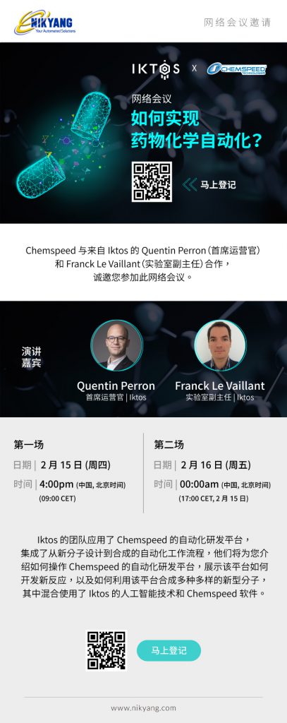[網(wǎng)絡(luò)會(huì)議邀請(qǐng)] IKTOS x Chemspeed|如何實(shí)現(xiàn)藥物化學(xué)自動(dòng)化?